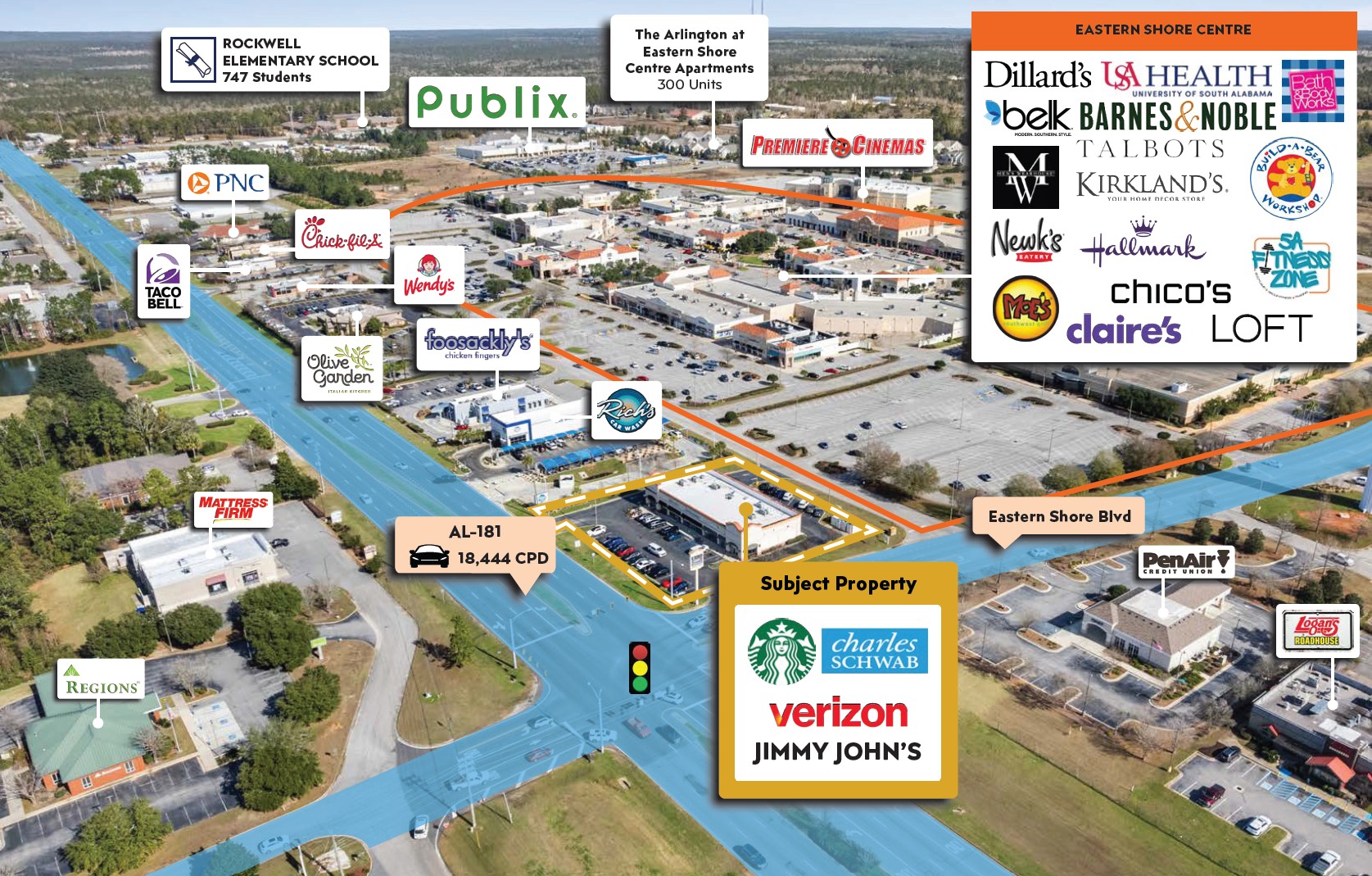 – Eastern Shore Point also boasts completely unobstructed visibility and a highly visible pylon sign.